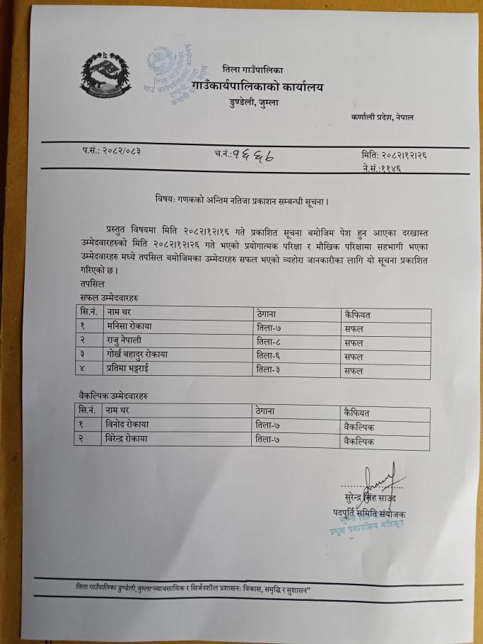 » गणकको अन्तिम नतिजा प्रकाशन सम्बन्धमा ।