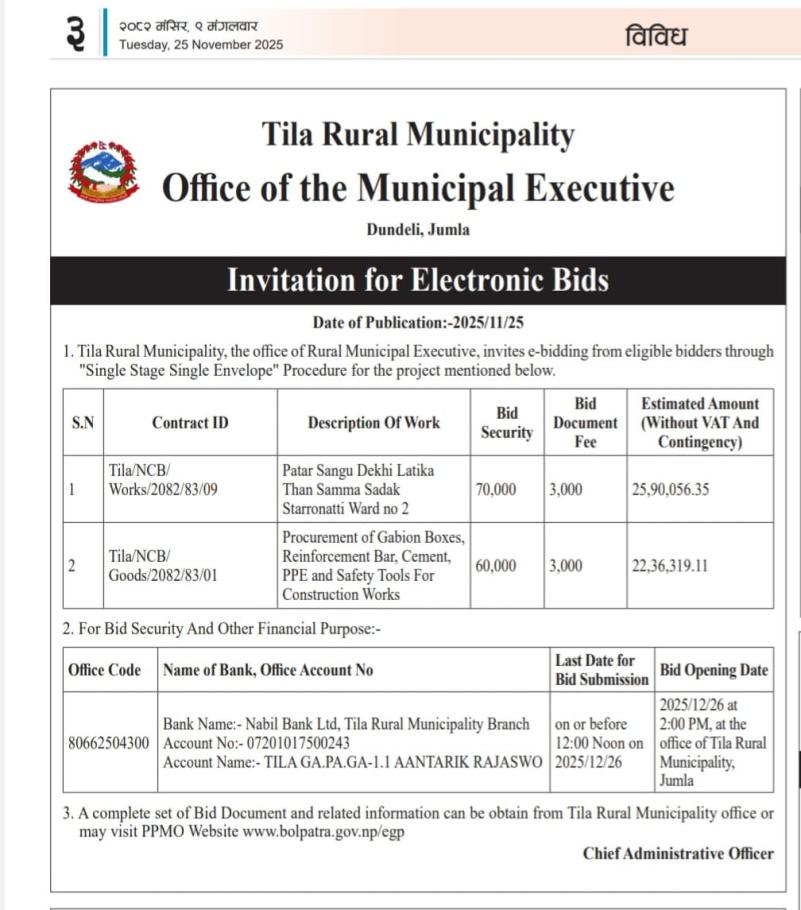 सार्वजनिक खरिद/बोलपत्र सूचना